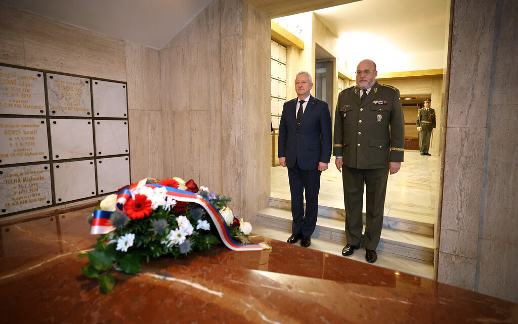 Ministr obrany Jaromír Zůna dnes v doprovodu ředitele Vojenského historického ústavu Praha brigádního generála Aleše Knížka uctil památku padlých ve světových válkách položením věnce k hrobu Neznámého vojína v Národním památníku na pražském Vítkově.
