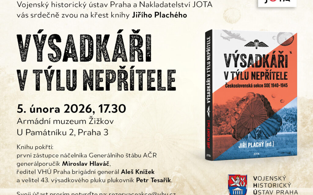 Přijďte 5. února na křest knihy „Výsadkáři v týlu nepřítele“ historika VHÚ Praha Jiřího Plachého