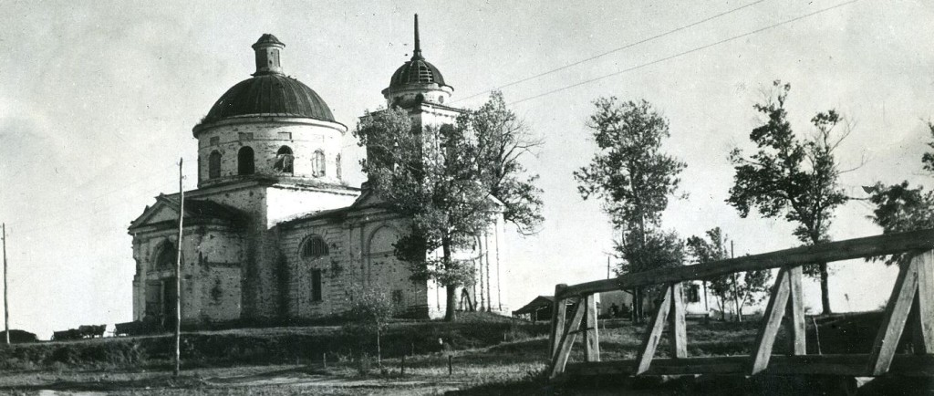 Pohled na kostel v Sokolovu v 50. letech 20. století