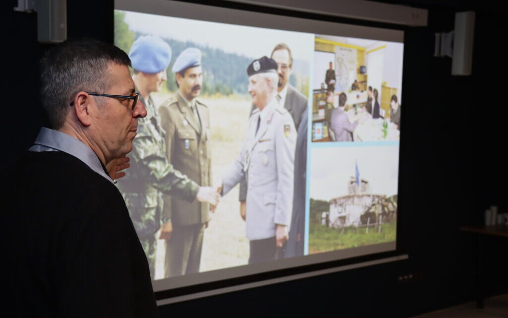Veteráni z mise UNPROFOR si během setkání prohlédli zajímavé fotografie a videa ze sbírky VHÚ Praha, které dokumentují jejich nasazení v sektoru Jih na území dnešního Chorvatska v rámci tehdejší separatistické Republiky Srbská Krajina.