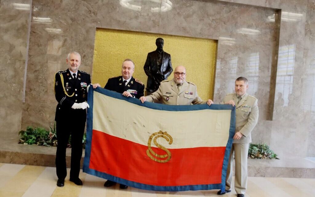 „Unikátní vlajka bude nyní restaurována a veřejnosti se představí na nejdůstojnějším možném místě – v připravované expozici Vojenského historického ústavu Praha věnované historii státních symbolů v Národním památníku na Vítkově“, říká brigádní generál Aleš Knížek, ředitel Vojenského historického ústavu Praha. Ve své řeči vyzdvihl zásluhu Jeho Eminence Dominika kardinála Duky, s nímž v roce 2024 zahájili sérii jednání o získání této unikátní vlajky do sbírky VHÚ Praha. „Chtěl bych také moc poděkovat spirituálovi této koleje Tomáši Roulemu a samozřejmě rektorovi Tomáši Koumalovi. Oni mají také velké zásluhy na tom, že dnes můžeme převzít takto unikátní předmět do našich sbírek,“ dodal Aleš Knížek.