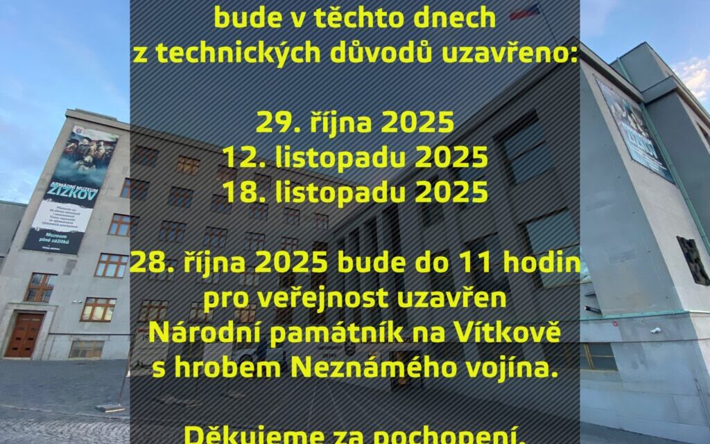 28. října 2025 pak bude do 11 hodin pro veřejnost uzavřen Národní památník na Vítkově s hrobem Neznámého vojína. Armádní muzeum Žižkov i Národní památník hrdinů heydrichiády jsou v tento den ořevřeny.